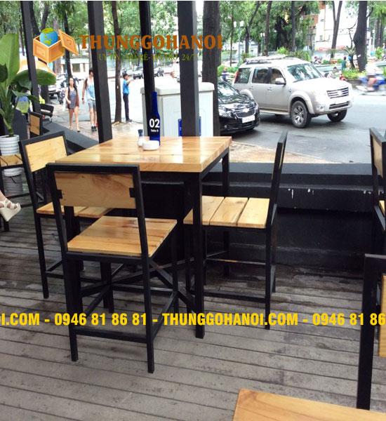 30 mẫu bàn ghế chân sắt mặt gỗ đẹp, giá rẻ